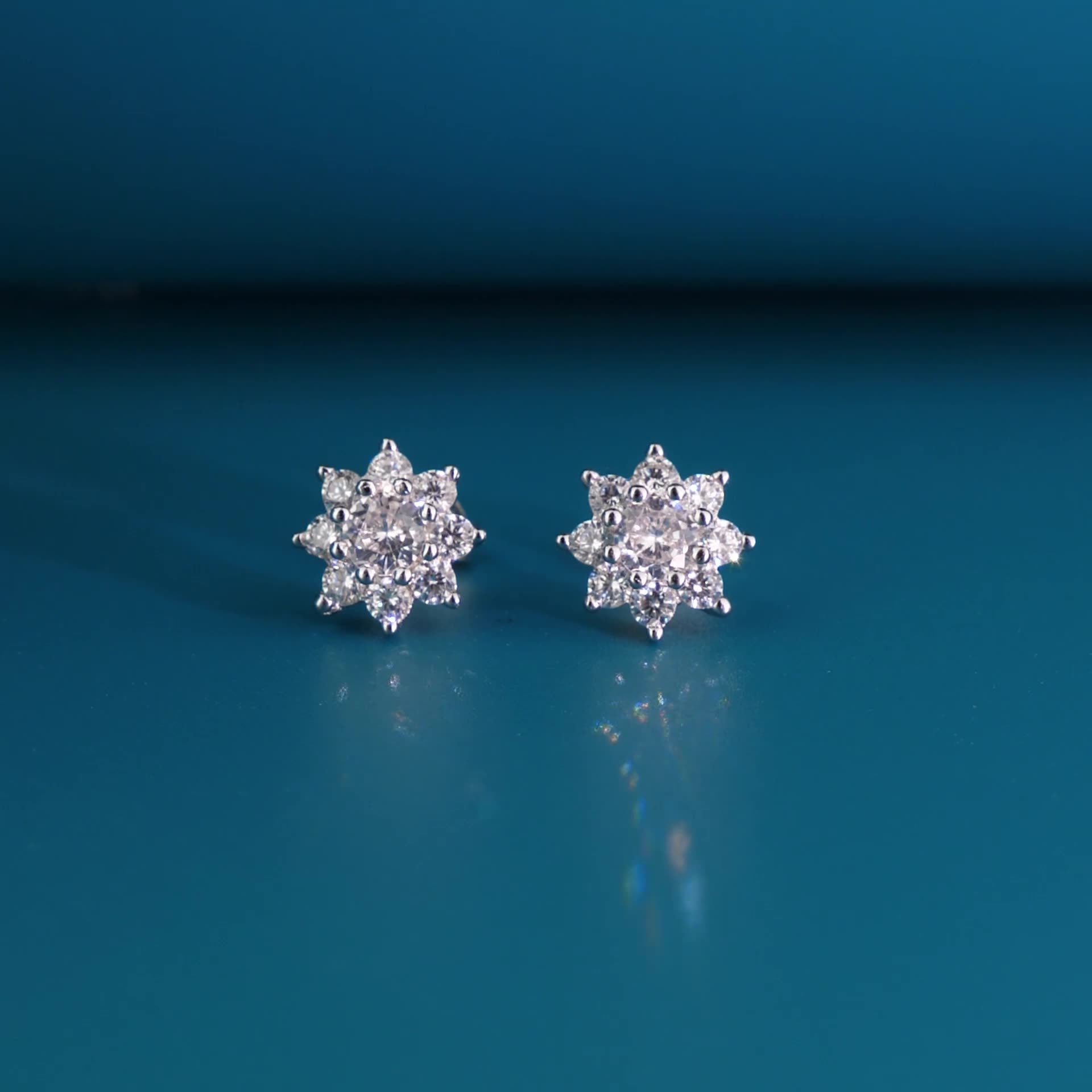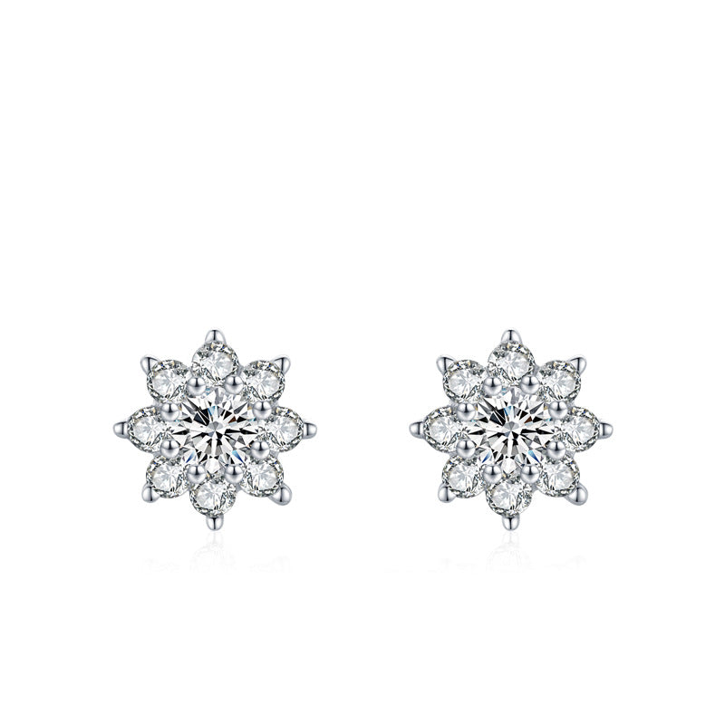 עגילים צמודים בעיצוב פרח כסף 925 משובץ אבני זירקוניה