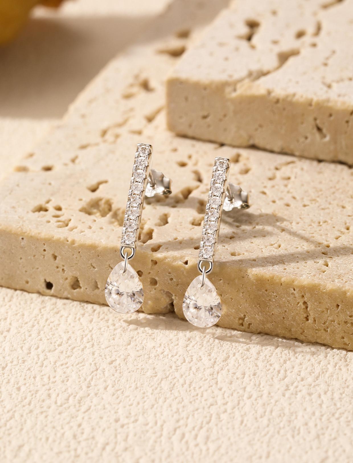 עגילים צמודים נופלים כסף 925 מושבי אבני זירקוניה