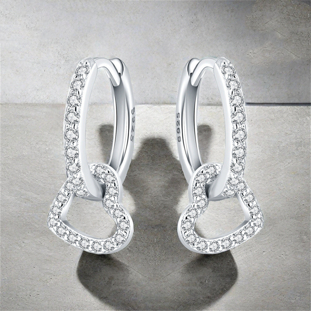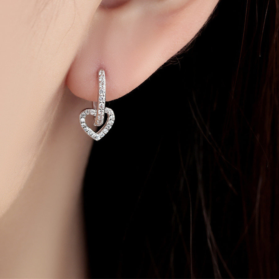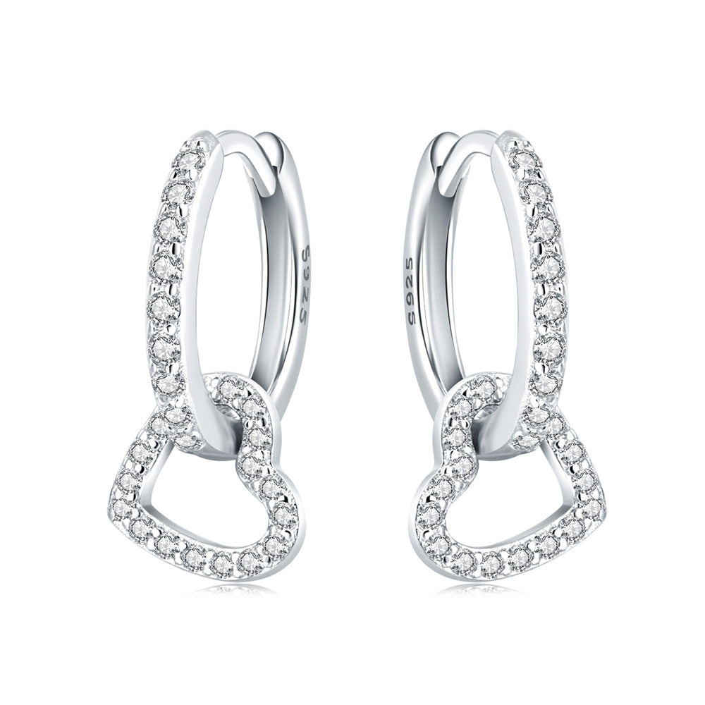 עגילי חישוק עם לב מכסף 925 משובצים אבני זירקוניה עגילי חישוק עם לב מכסף 925 משובצים אבני זירקוניה