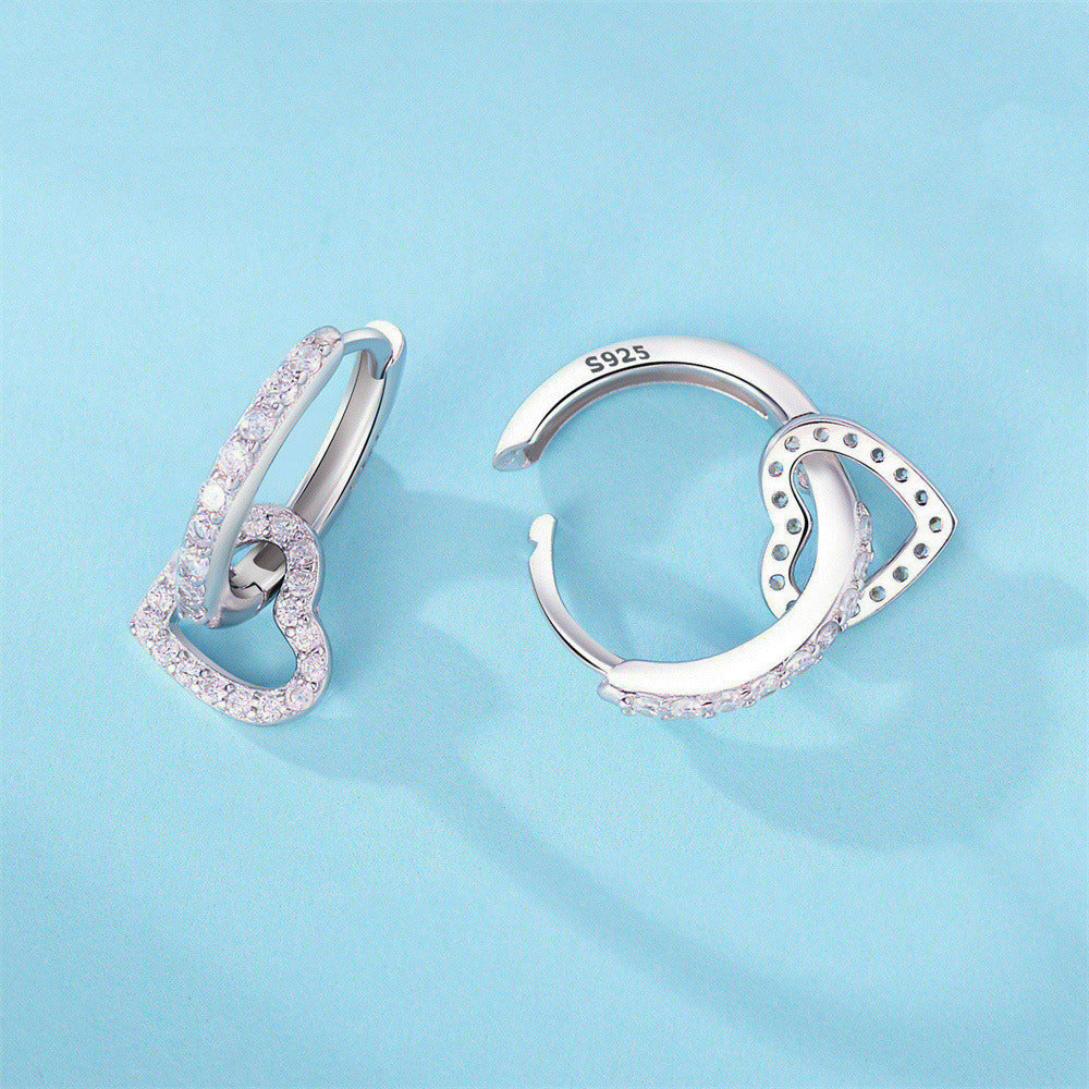 עגילי חישוק עם לב מכסף 925 משובצים אבני זירקוניה
