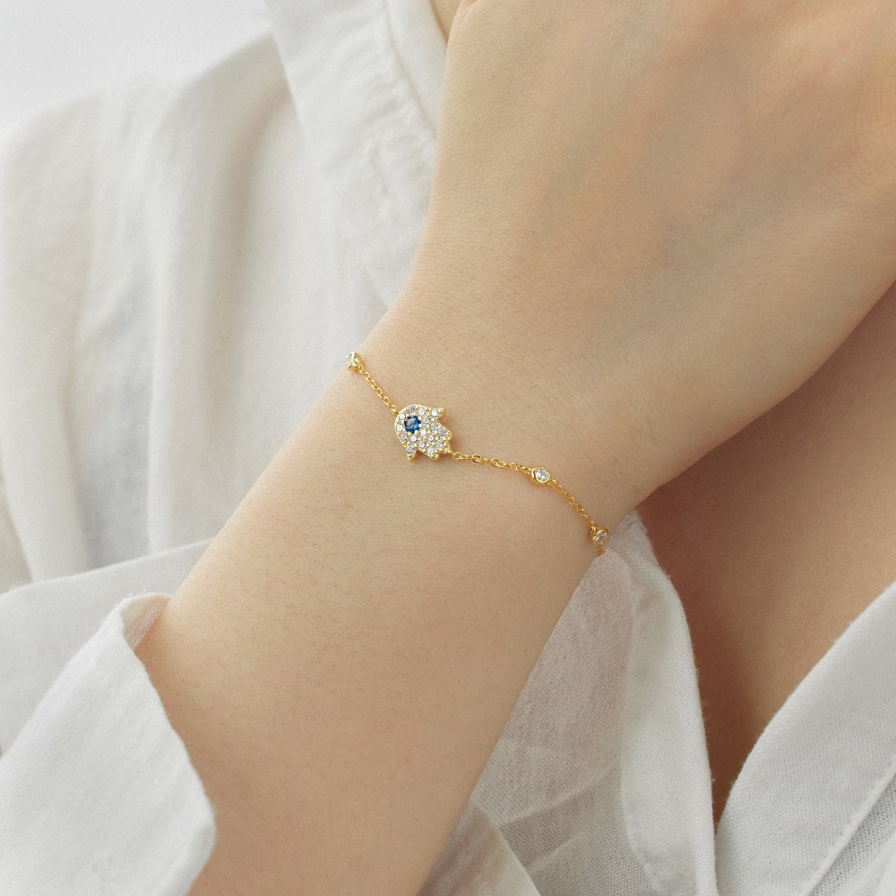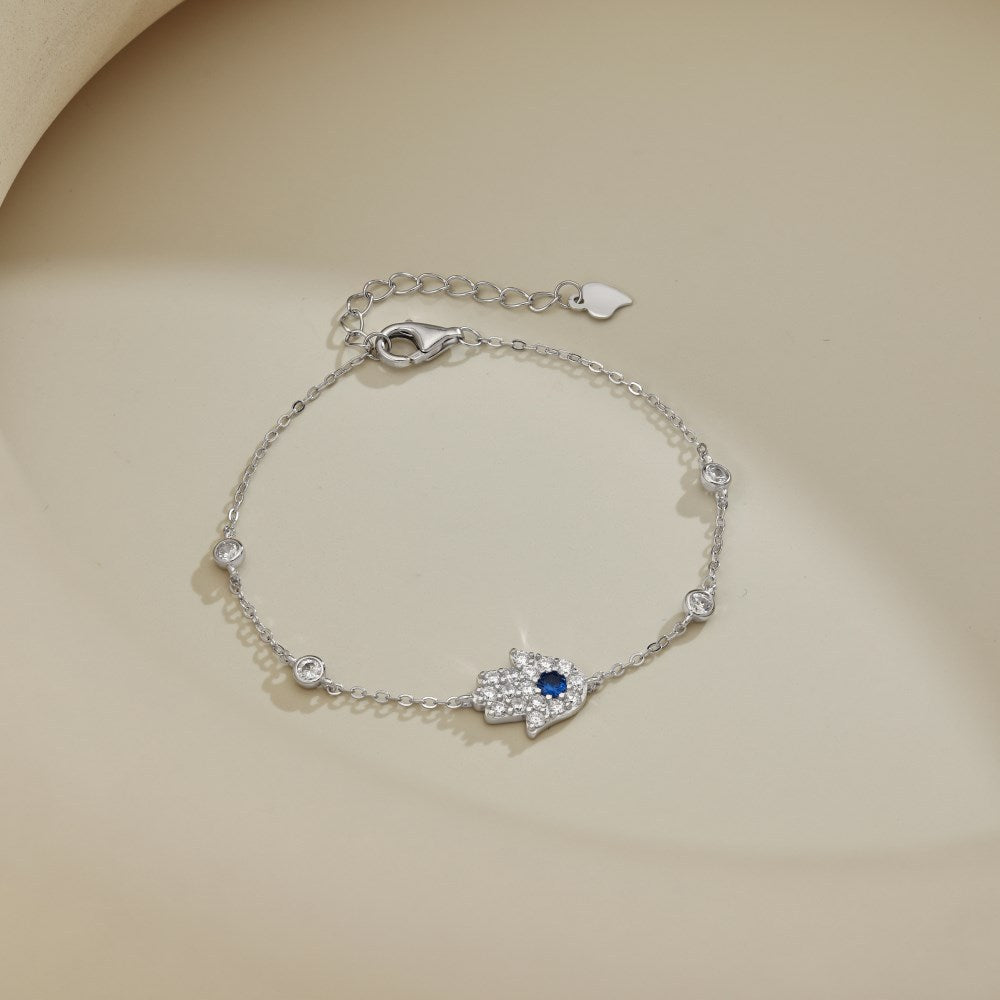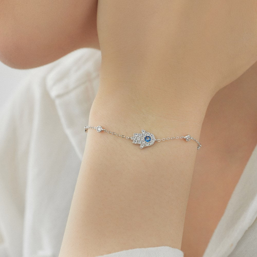 צמיד חמסה כסף 925 משובץ אבני זירקוניה