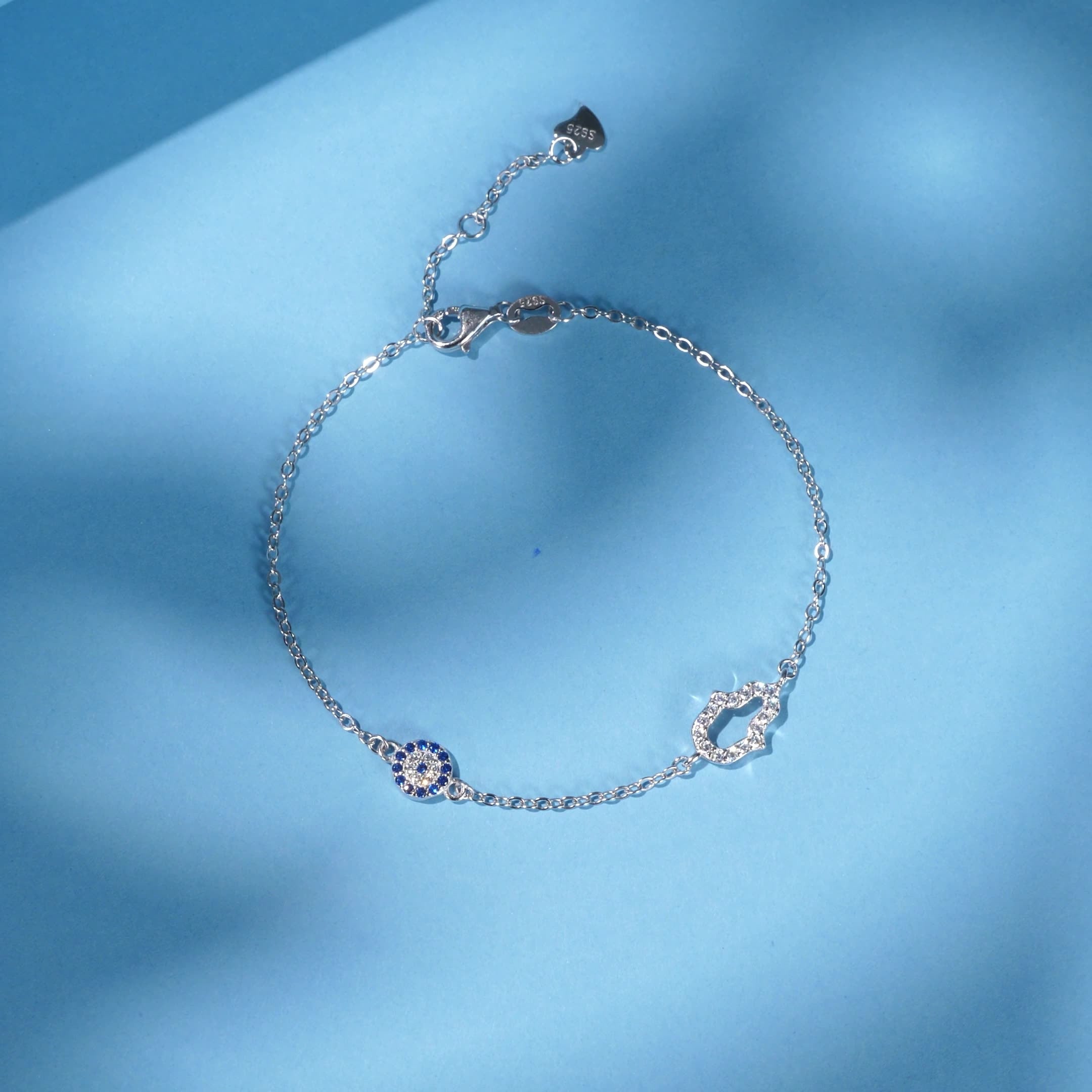 צמיד חמסה כסף 925 משובץ אבני זירקוניה