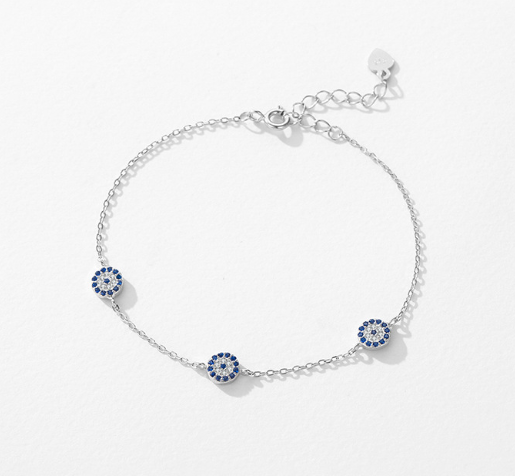 צמיד תליוני עין הרע כסף 925 משובץ אבני זירקוניה