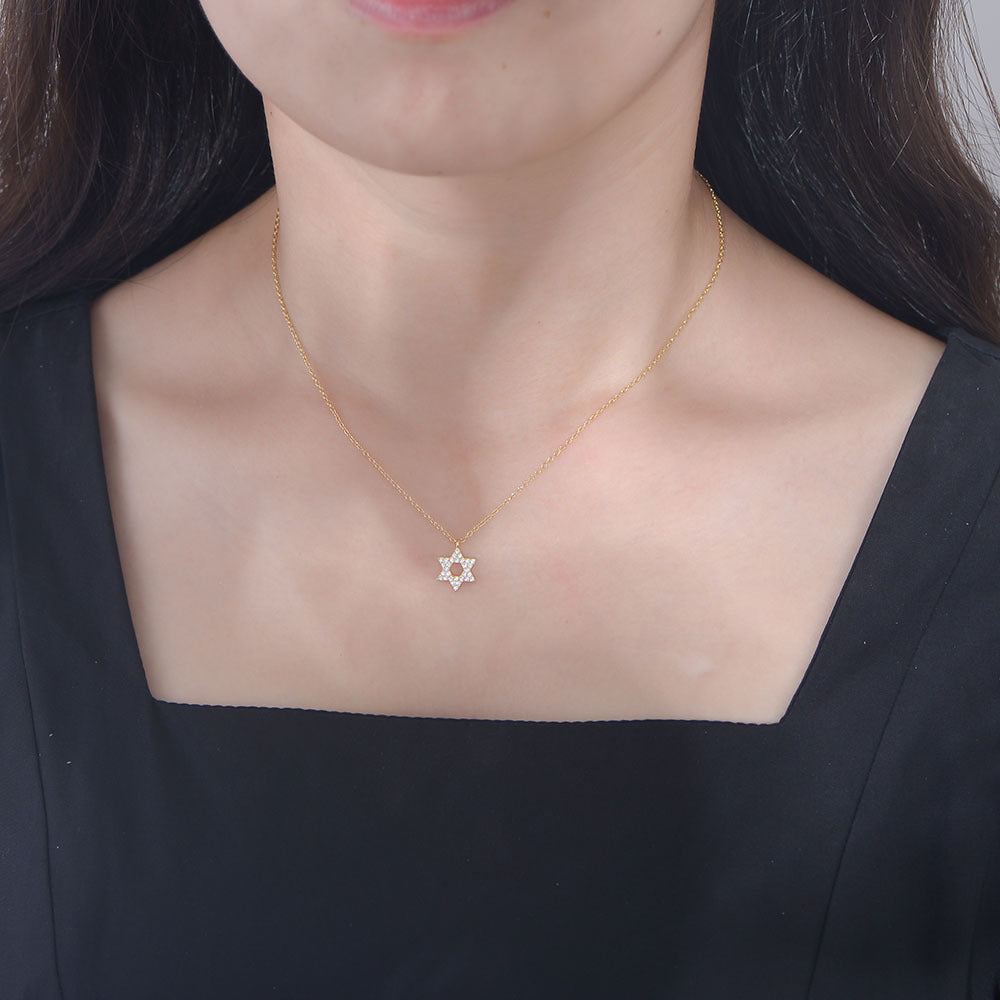 שרשרת מגן דוד כסף 925 מצופה זהב משובץ אבני זירקוניה שרשרת מגן דוד כסף 925 מצופה זהב משובץ אבני זירקוניה