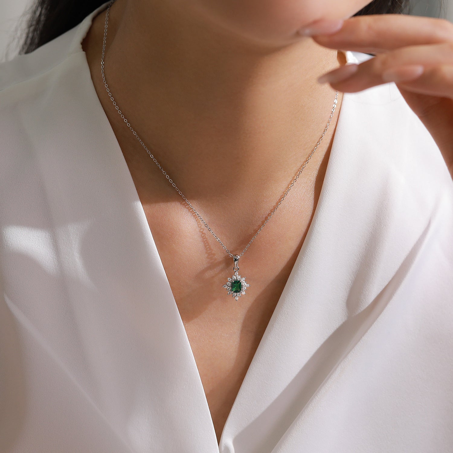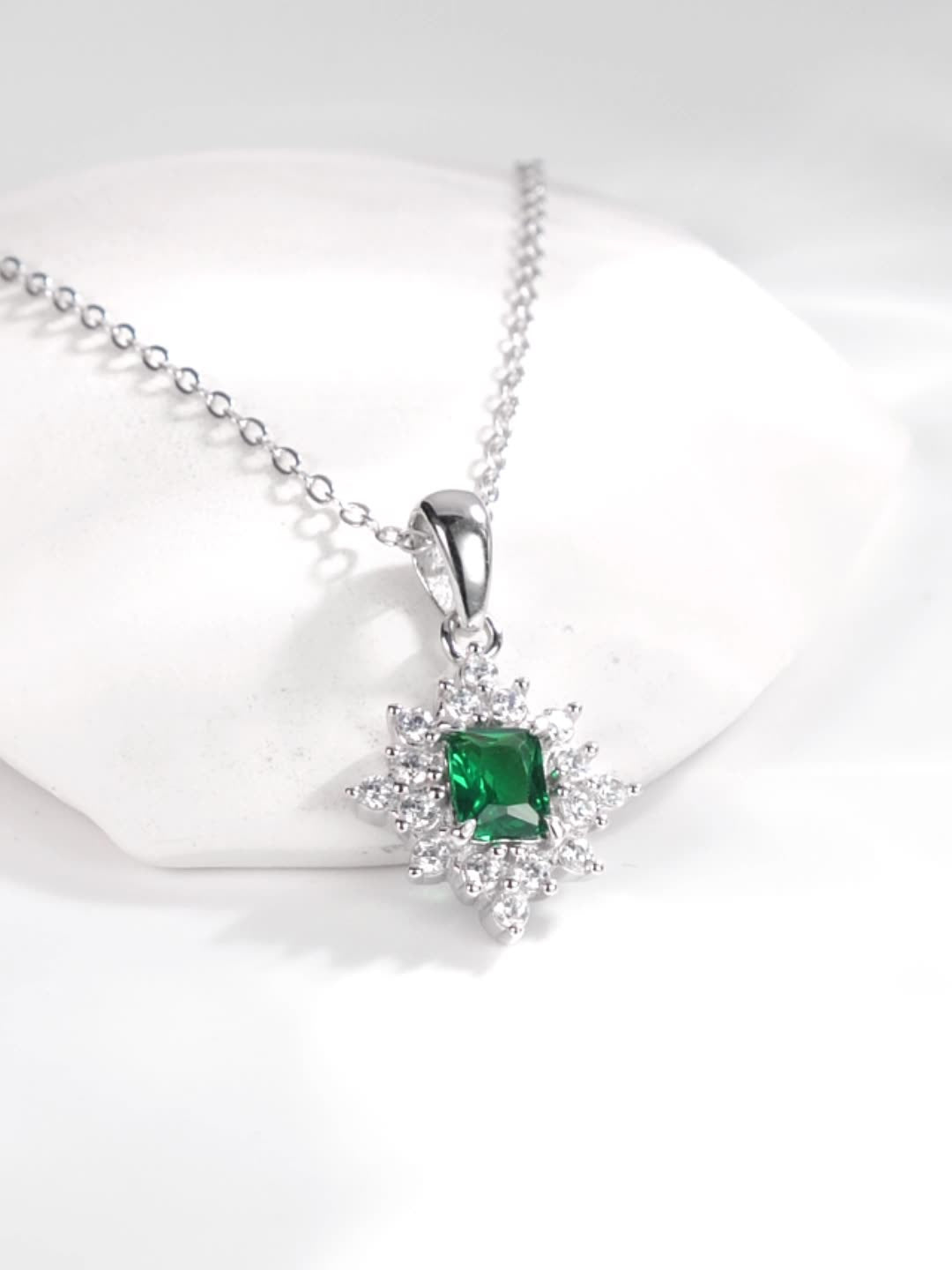 שרשרת תליון ירוק כסף 925 משובץ אבני זירקוניה