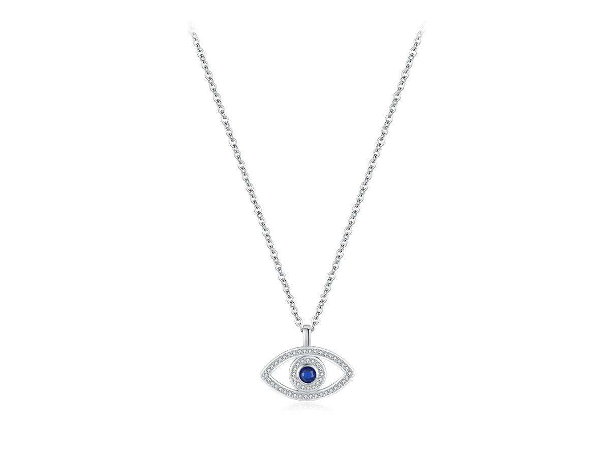 • שרשרת תליון עין כחולה כסף 925 משובץ אבני זירקוניה
